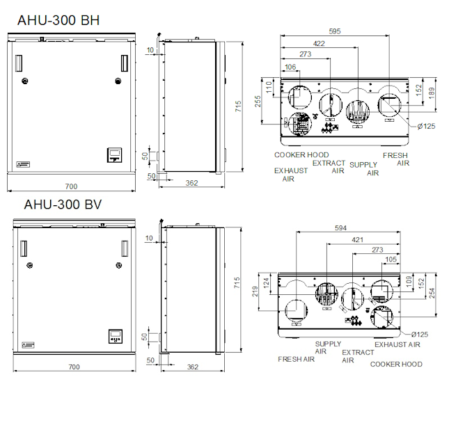 AHU 300 BH y BV es una unidad de ventilación de la serie AHU de Ensy. La variante AHU 300 izquierda y derecha tiene una capacidad de 300 m³ / h y es adecuada para apartamentos / casas y villas. Los modelos se basan en la mejor tecnología disponible aquí ha resultado: Eficiencia energética y bajo nivel de ruido. Muy fácil de manejar y con un diseño muy atractivo. Las AHU-300 BH y BV están diseñadas para su montaje en la pared, así como para su colocación en el ático frío. Por supuesto, los aparatos AHU están diseñados para cumplir los requisitos de la normativa vigente. Además, gestiona los requisitos del estándar “Passive House”.